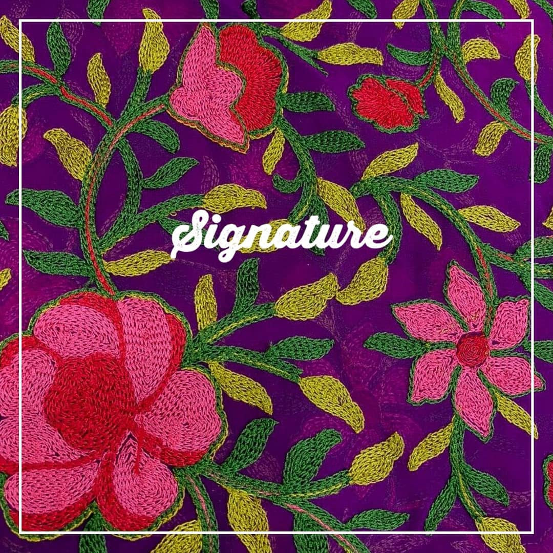 Back to Buy Violet Chiffon Fabric With Traditional Floral Thread Work at MK SIGNATURE Groom and Bride